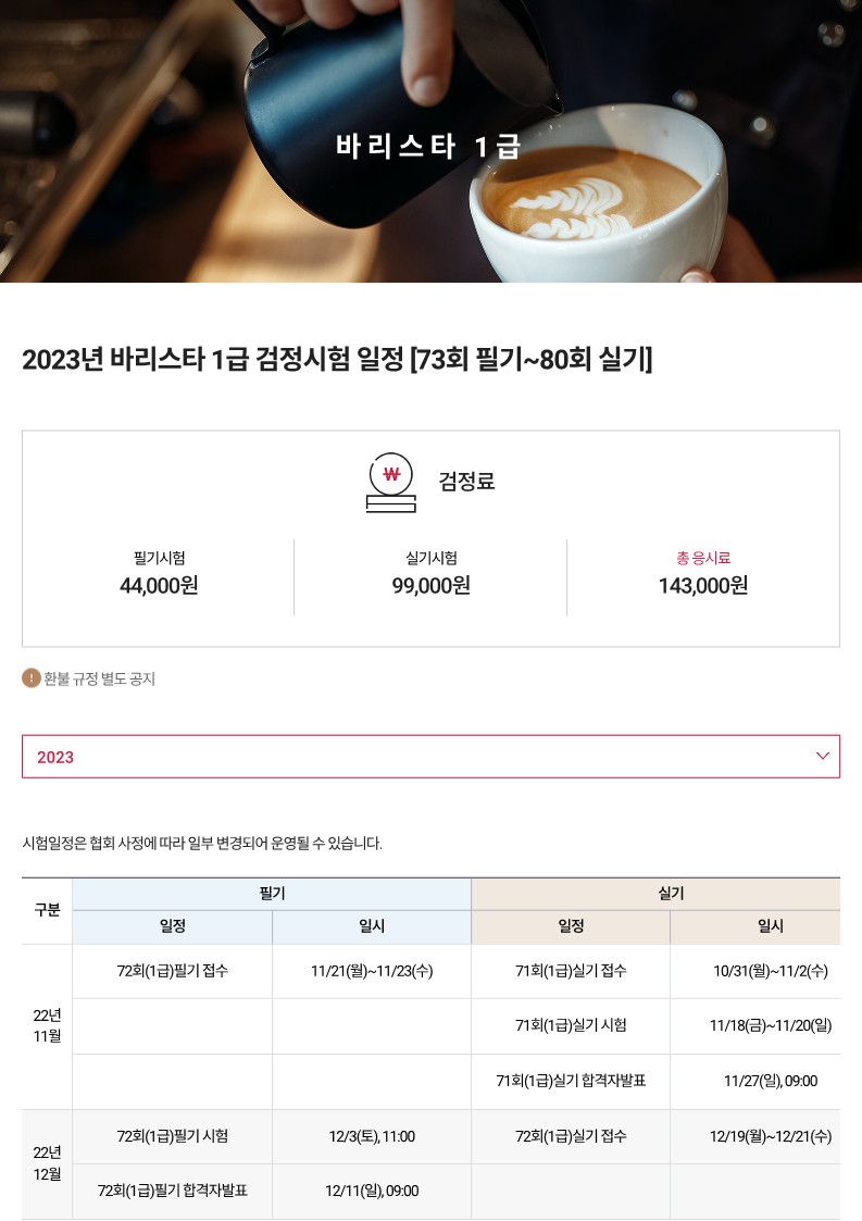 | 2023 (사)한국커피협회 바리스타1급 시험일정 |
